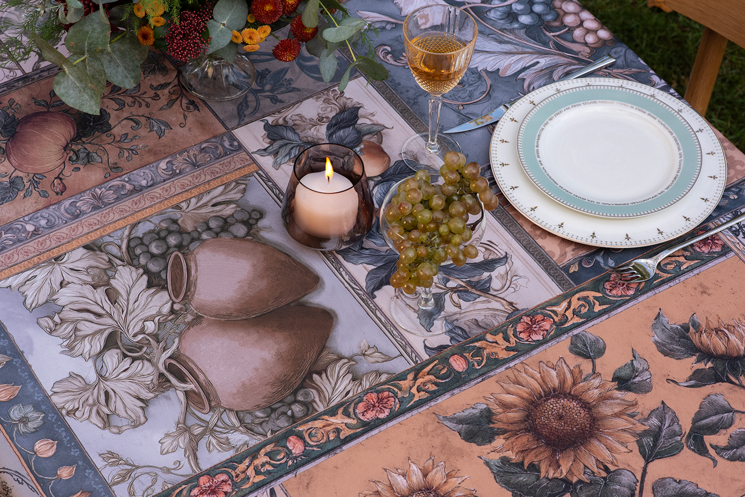 ბლუტაბლას ახალი საშემოდგომო სუფრის დიზაინში მთელი შემოდგომის სენტიმენტი და სიუხვით სავსე დეტალებია გაერთიანებული. ეს მყუდრო კოლაჟი აერთიანებს რთველის მადლს, მოსავლის ოქროს ფერებსა და ძველი ქართული ორნამენტების ხიბლს, რითაც შემოდგომის ესთეტიკა სრულად ცოცხლდება თქვენს სუფრაზე.