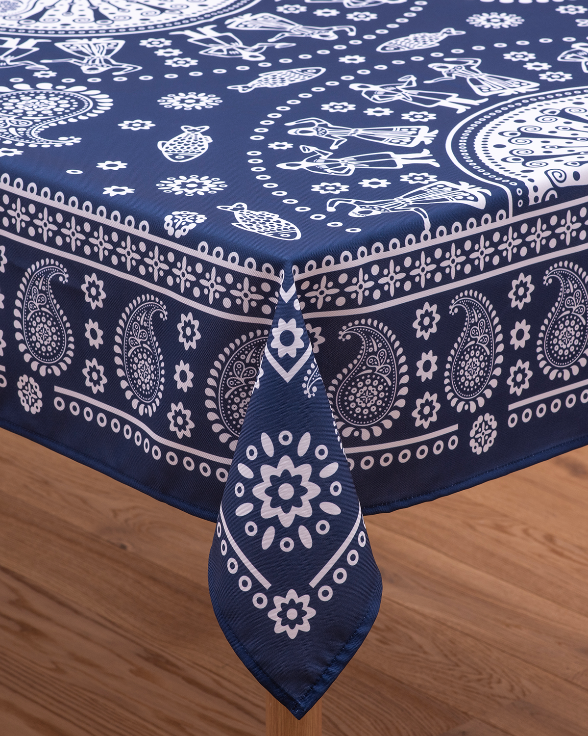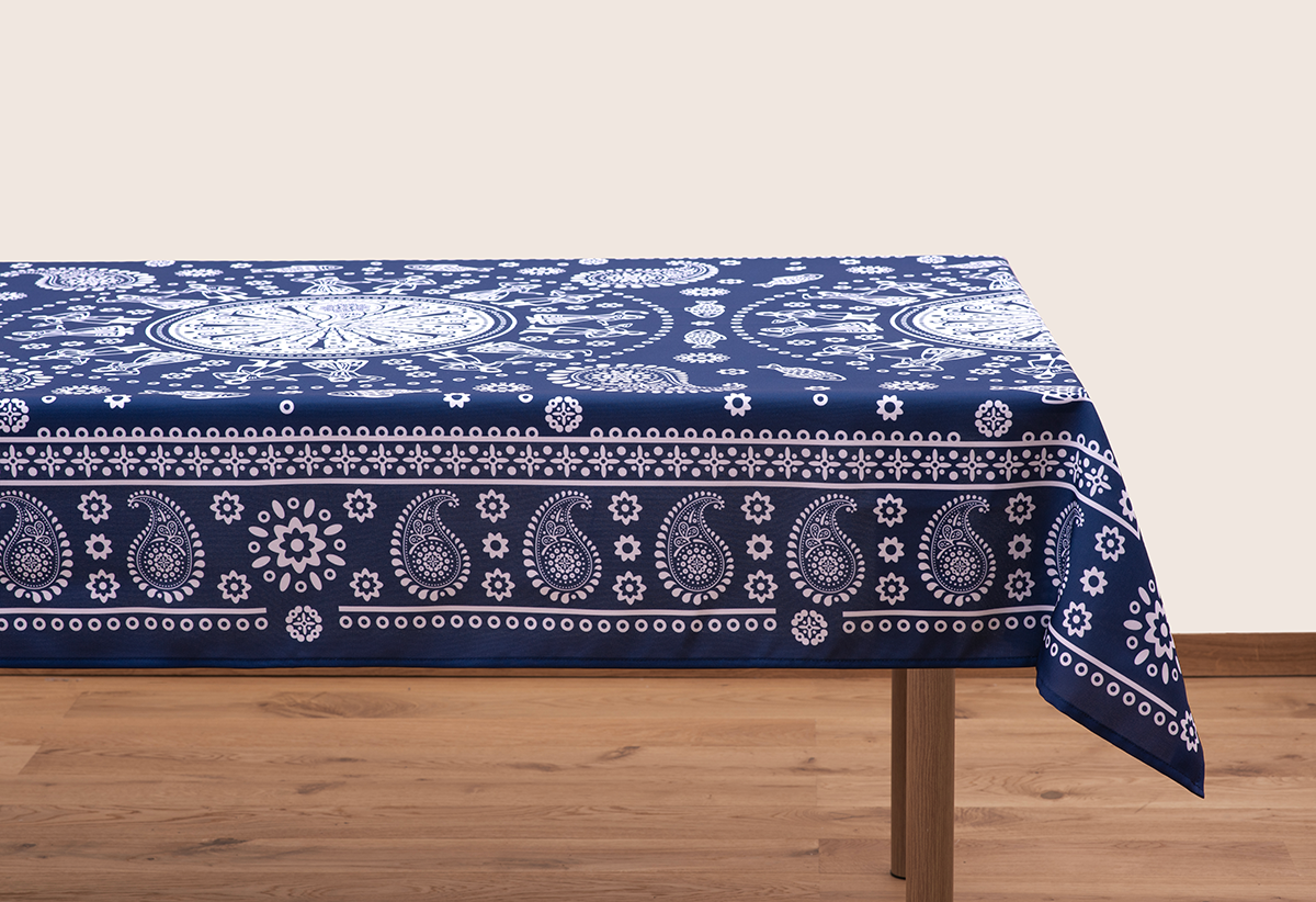 The story of the blue tablecloth starts in 17th century Tbilisi, where cotton fabrics were dyed using indigo pigments and embellished with national ornaments. The colour was apparently chosen to disguise stains caused by the spills of dark Georgian red wine. The blue tablecloth has since become a feature of every table in Tbilisi homes and still remains the first glimpse of Georgian hospitality to this day.
