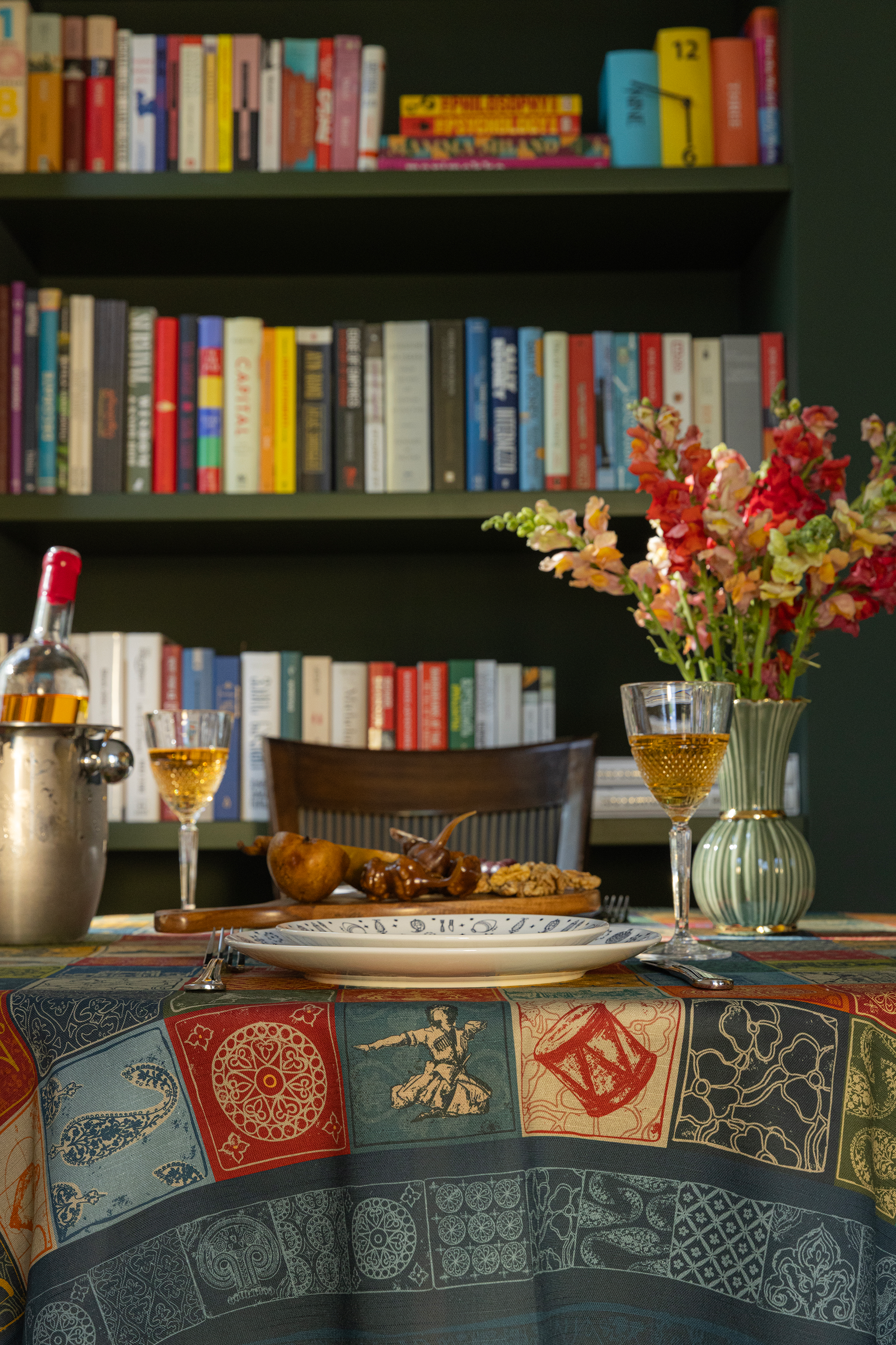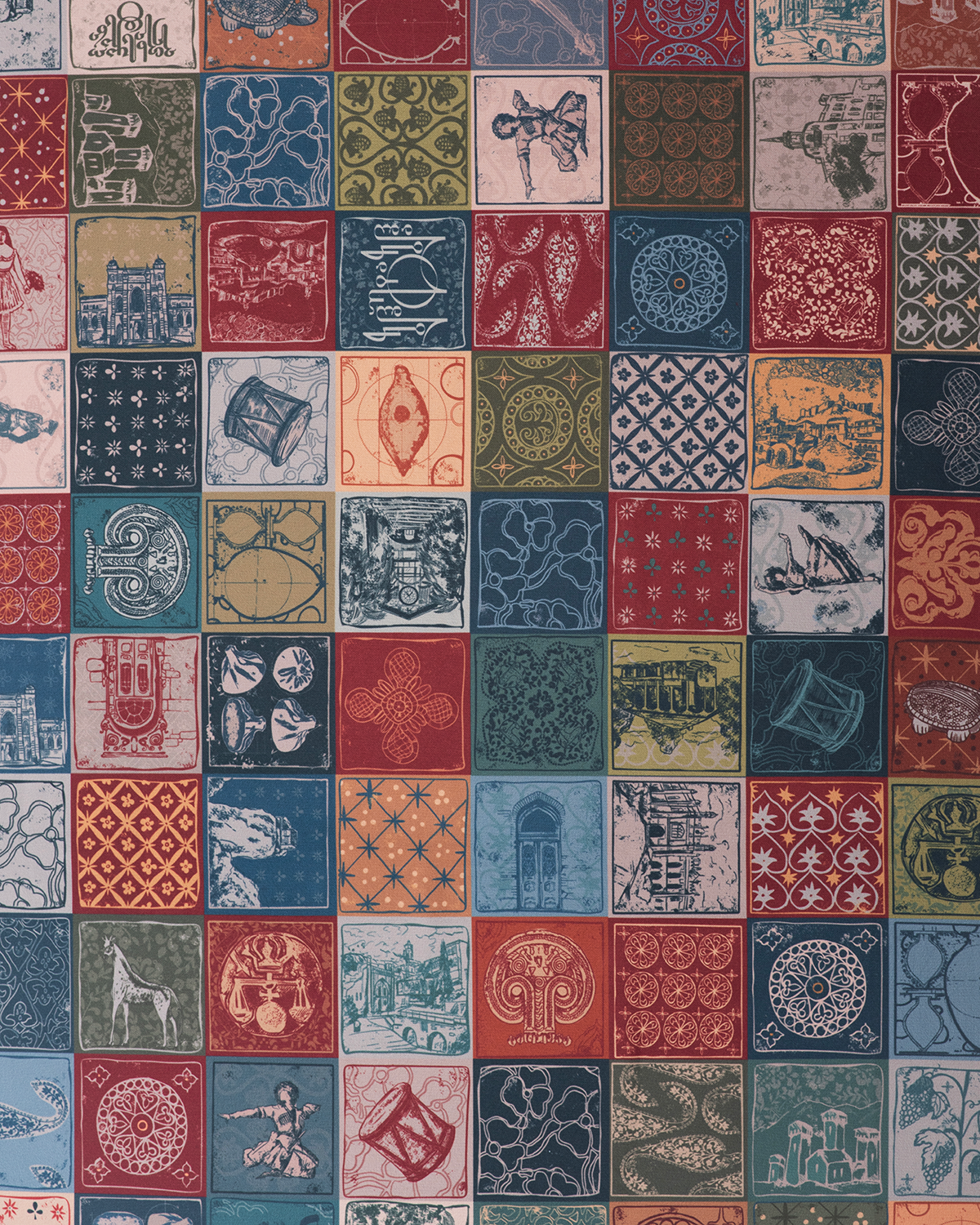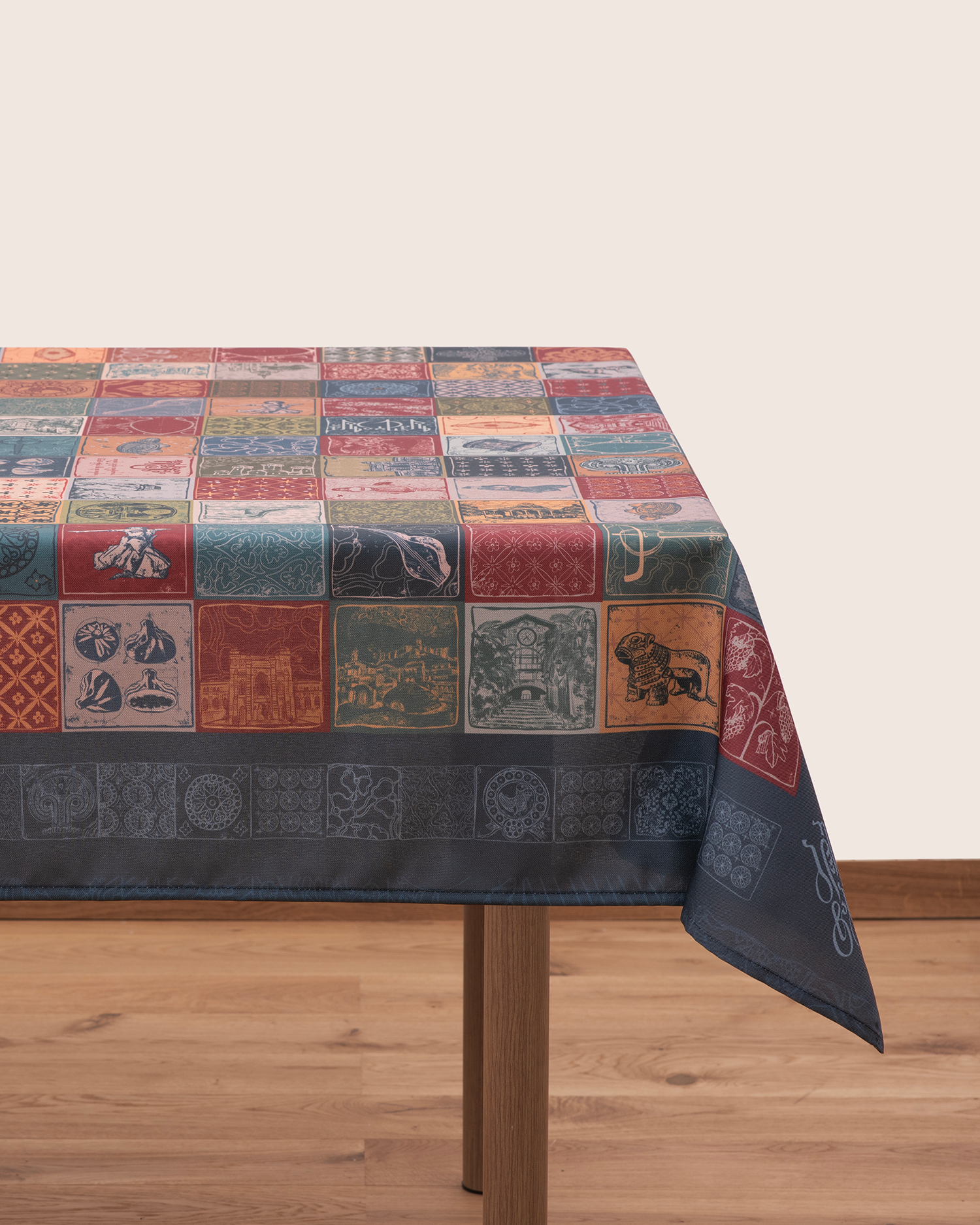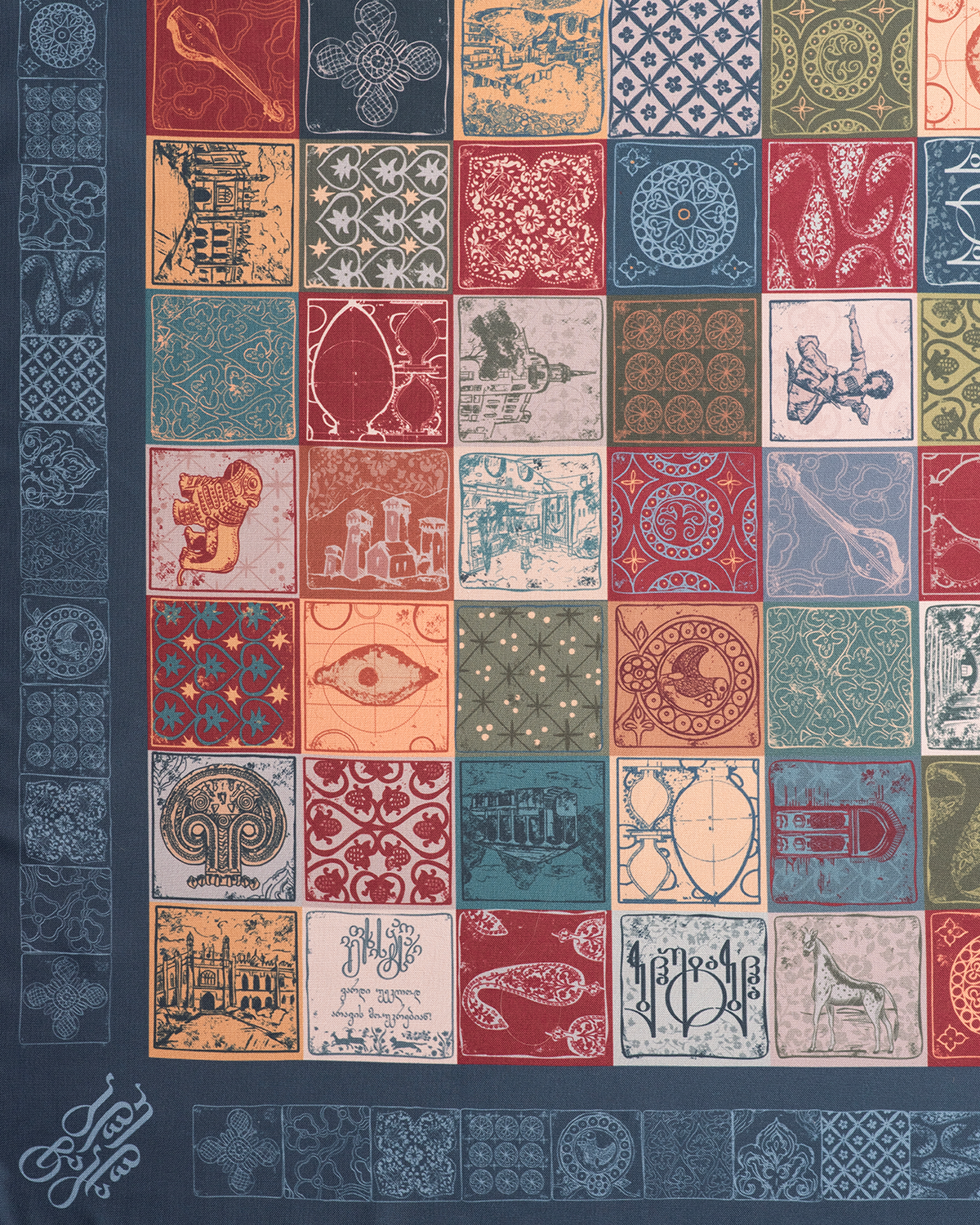 ქართული სუფრა აერთიანებს საქართველოს კულტურის საგანძურს. ამ სუფრაში ჰარმომიულად არის შერწყმული ტრადიციული ორნამენტები, საკრავი ინსტრუმენტები, ვეფხისტრაოსნის აფორიზმები. ასახულია სხვადასხვა ღირსშესანიშნაობა: თბილისის ოპერა, აბანოთუბანი, დადიანების სასახლე, კაცხის სვეტი, მეგრული ოდა.. დატანილია საქართველოს მხარეები: აფხაზეთი, სვანეთი, სამეგრელო.. ასევე, გამოსახულია ქართული ცეკვა. შეგვხვდება ქართული კერძები: ხინკალი, აჭარული ხაჭაპური.. „ქართული სუფრა“ - ქართულით სავსეა.
